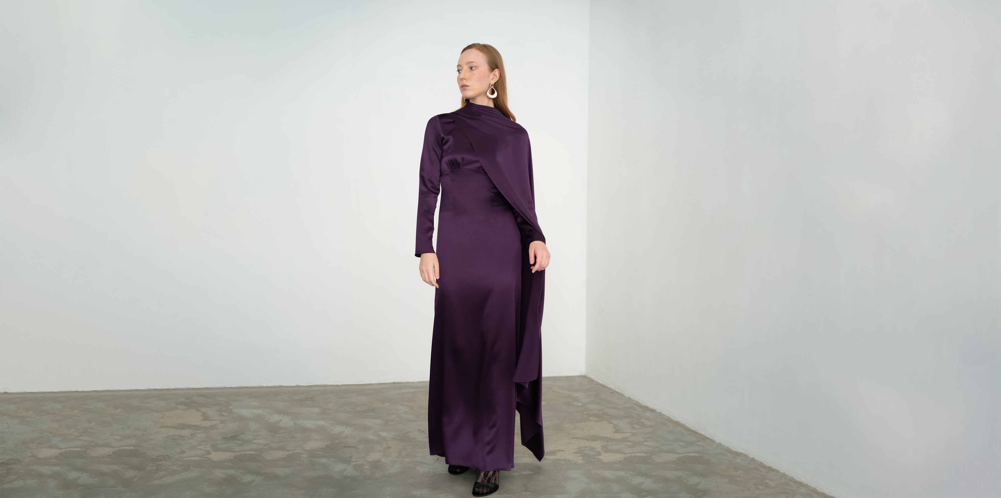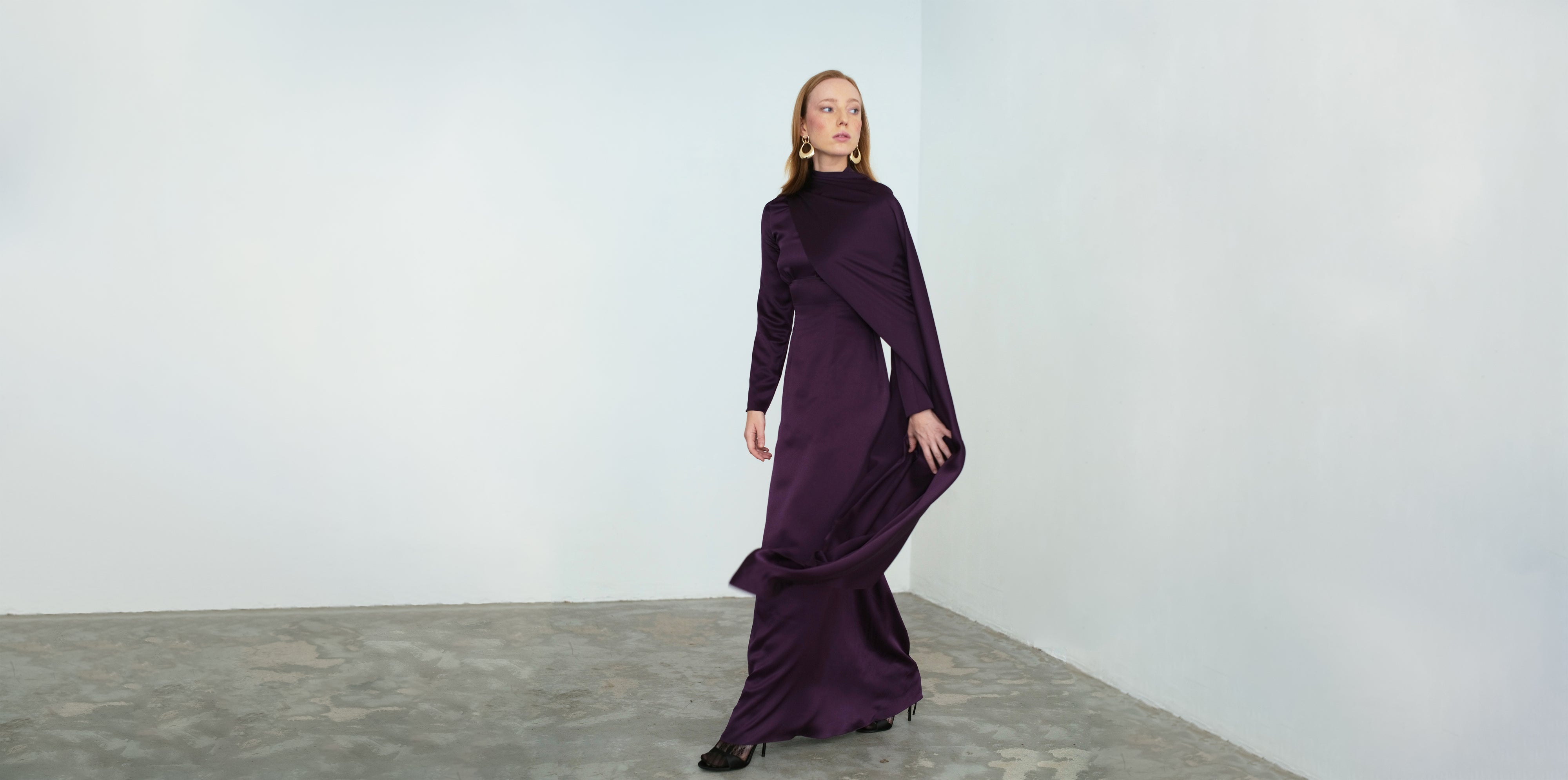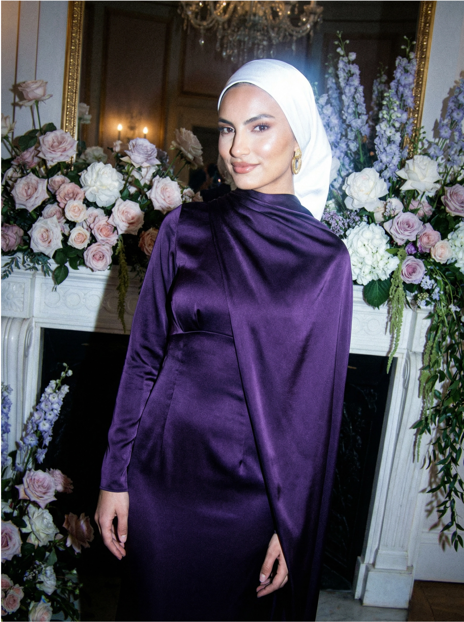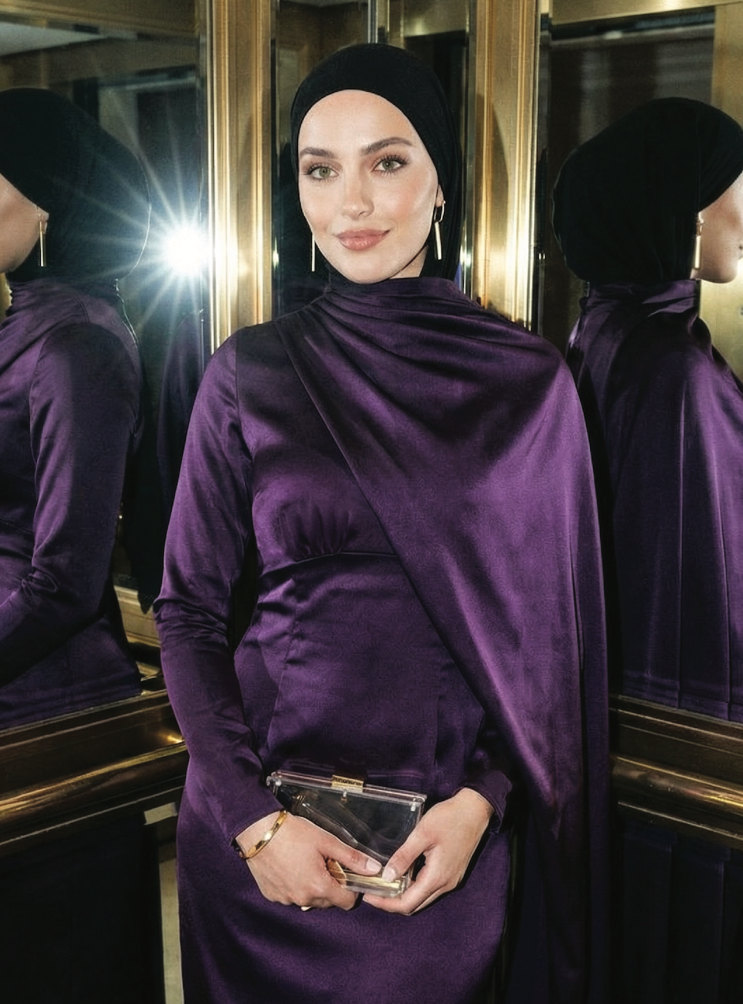 A modern modest dress crafted in London from pure silk. Designed through European design principles and refined garment construction, the True Kimesca offers a fashion-forward approach to modest occasionwear. Created for weddings, formal events and elevated dressing, it reflects the new direction of contemporary modest fashion.
